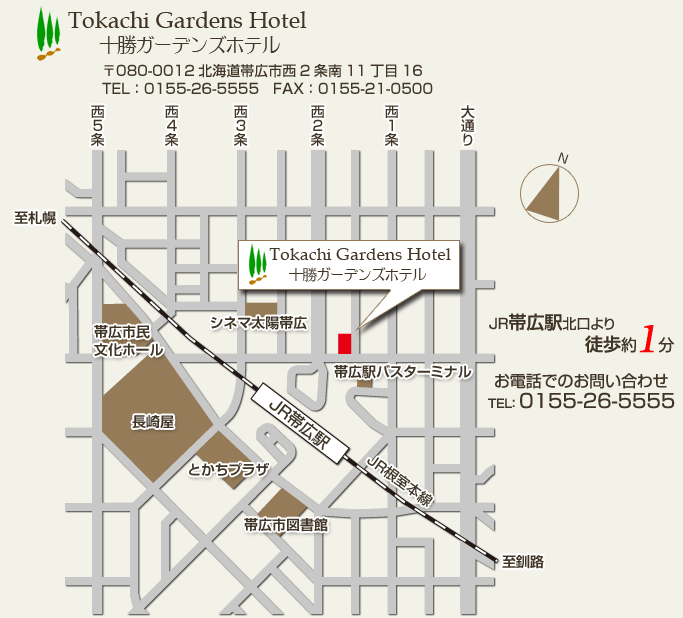 北海道帯広市西2条南11丁目16 でお待ちしております。