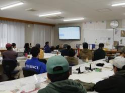 定期的に開催する全体会議の様子。このほかにも、チームビルディングやコーチング、課題発見力強化研修といった外部研修も取り入れ、従業員のスキルアップをおこなっています。