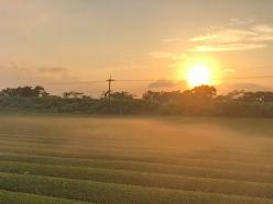 ◇霧島山近くで、朝霧に覆われた茶園は幻想的です