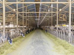 こちらは子牛を育てる牛舎です。当社では自家育成にこだわり、斉一性のある優秀な牛を生産しています。清潔な環境と適切な温度管理を徹底しています。