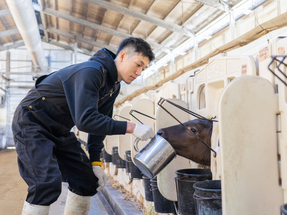 当牧場では、自社で生まれた仔牛を、自社でそのまま育成をしていきます。将来の牧場を支える存在である、仔牛の成長を見守る大切な仕事です。データを活用しながら、牛をよく観察し、「今日はこの子が少し元気がないかも」というあなたの気づきをチームで共有していってください。その積み重ねで、結果的に牛の命を救うこともつながります。