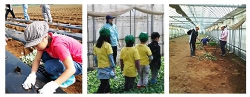 ○地域の皆さまを農場に招いて農業体験会を実施する。